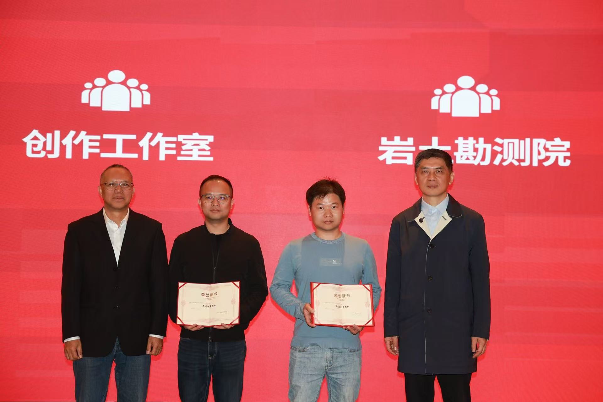 (董事长江汝平、韩小雷教授与优秀团队负责人合影)