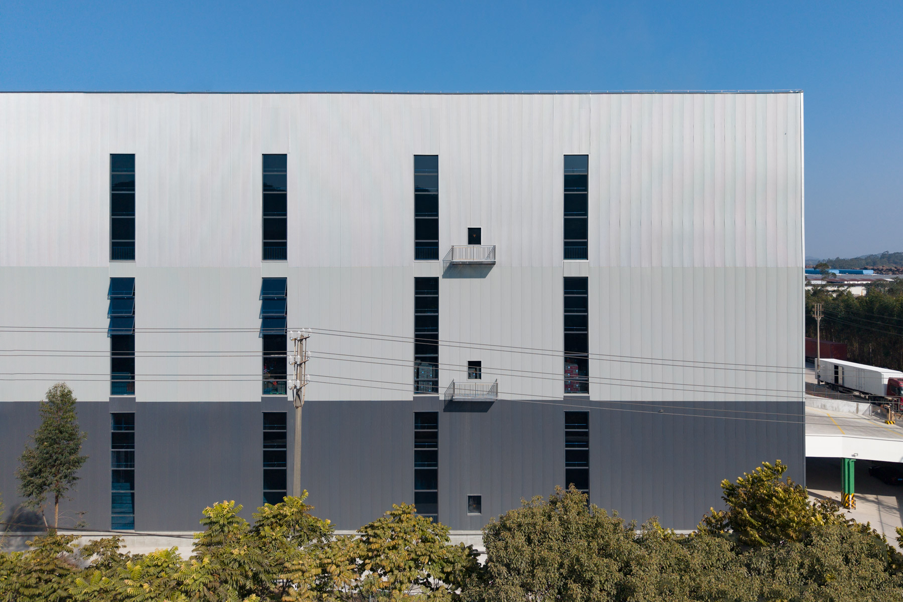 物流用房内部空间均为大框架,有利于企业根据实际自行隔断。在造型上采用高低错落、虚与实对比的手法,与整体建筑融为一体,相互映衬,整个建筑色彩丰富,与周围环境较完善结合,塑造新的建筑形象。